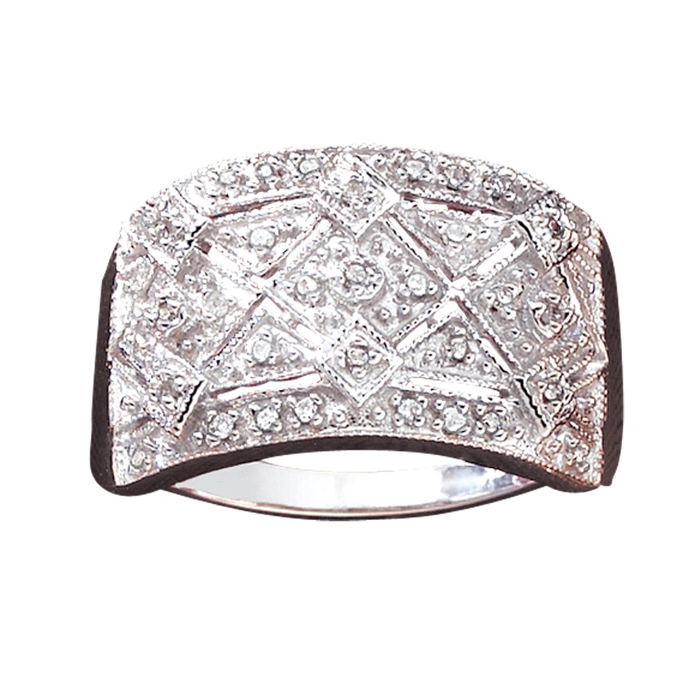 1/7 ct. tw.* diamond milgrain band ring features 35 round diamonds set in 10K polished white gold.